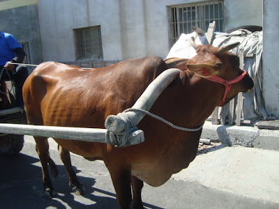 我們8人坐上了牛車,說是可坐6人,但有4個體重輕的小孩,所以全坐上去,一上去我就開始良心不安....